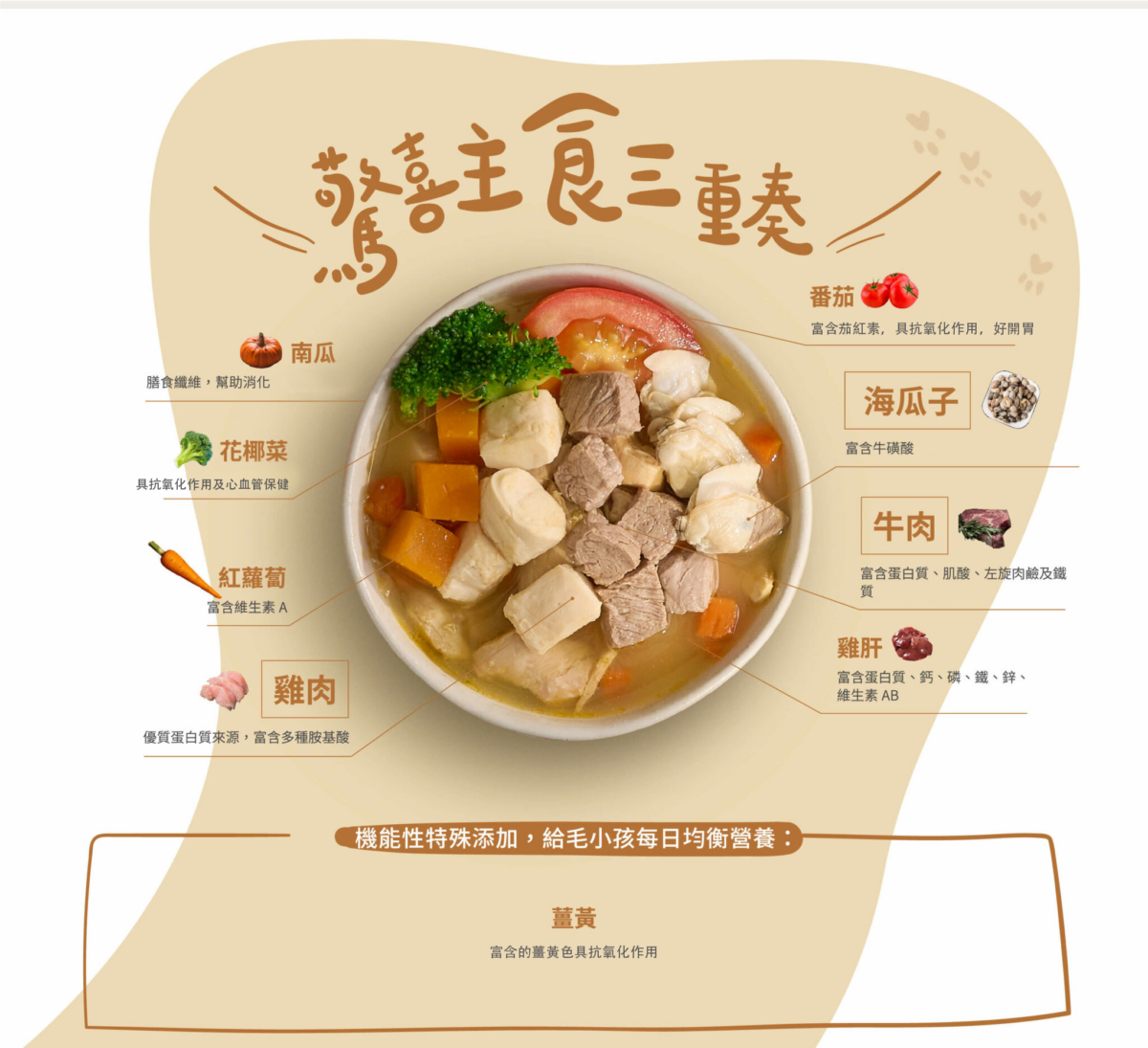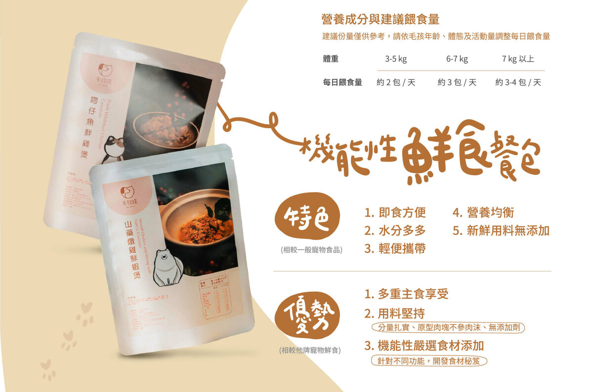 鮮食餐包當主食之外,也可與飼料做搭配,用餐更添風味,