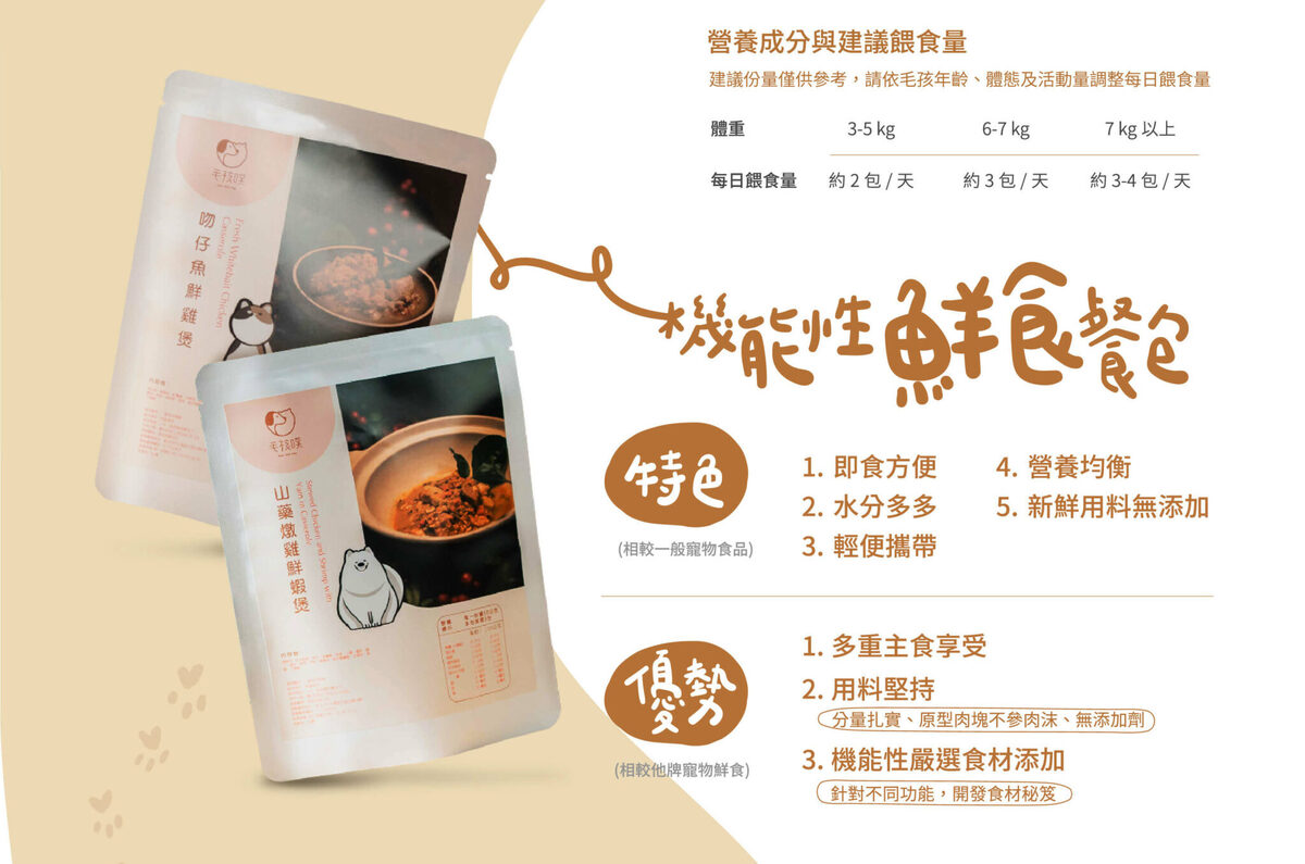 鮮食餐包當主食之外,也可與飼料做搭配,用餐更添風味,